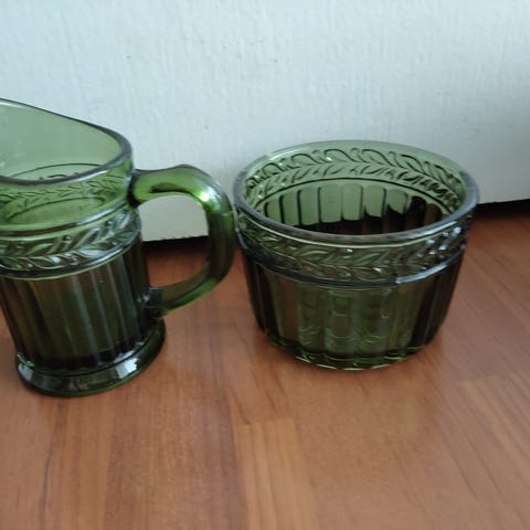 Riihimäen Lasi vihreä sokerikko ja kermakko
