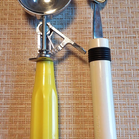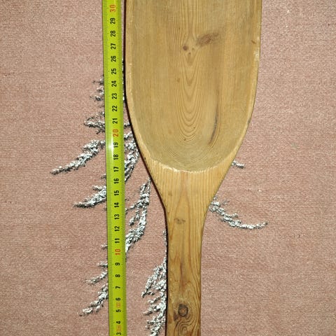 Vanha käsintehty kastikekauha (ruostumattomasta teräksestä). En ole yrittänyt kiillottaa.