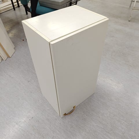 Musta ja kiiltäväpintainen kaappi. Lev 30, kork 164 ja syv 15.5 cm. Vedin 29 cm. Mukana 5 lasihyllyä, mutta hyllyiksi käyvät myös laatat, joita saa tarvittaessa mukaan.