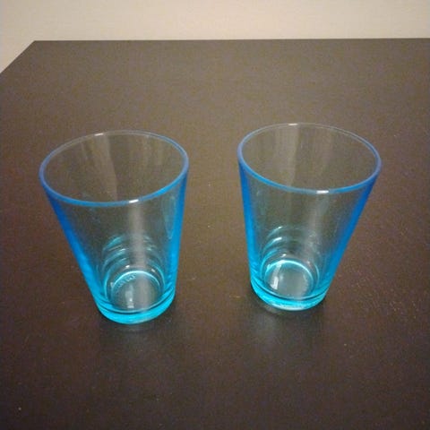 Myydään kaksi sinistä Iittalan Stefan Lindfors -juomalasia. Korkeus 12,5cm.
