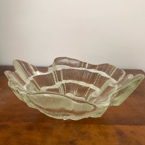 Ihana Muurlan Sini - valkoinen lasikulho, noin 9 cm korkea ja 19-20 cm halkaisija.