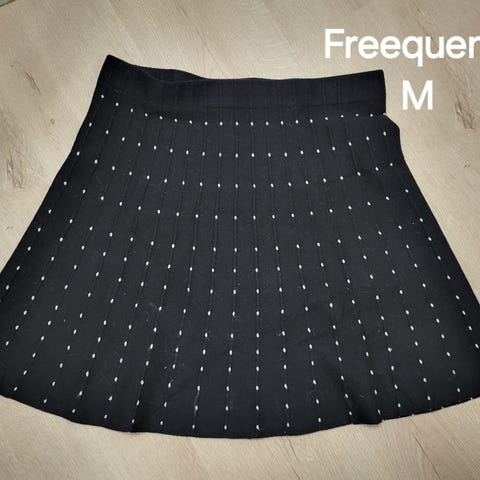 Harmaa neulehame, pituus yli polven. Kokomerkintä M. Jousvava vyötärö, joustava tekstiili. Kerran tai kahdesti käytetty, erinomaisessa kunnossa.