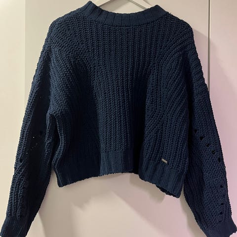 Miss Fortune -merkkinen off shoulders -mallinen neule, kokomerkintä XS. Käyttämätön. Kakkoskuvassa vastaava sininen paita.