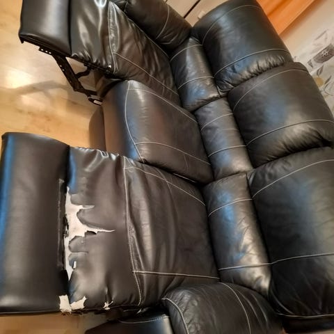 Toinen selkätyyny toiselta puolen rikki. Ei vaikuta käyttöön, mutta suosittelen paikkausta. Muutoin tukeva, laadukas ja siisti.