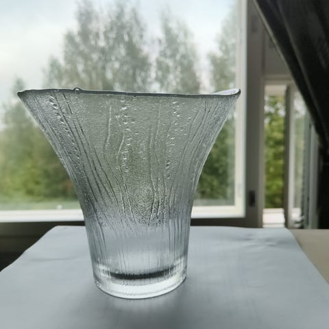 Humppilan lasimaljakko (Mikko Helander). Valkoinen huurrelasi korkeus 18,5cm