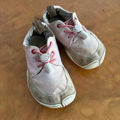 Vain muutamalla kesälomareissulla pidetyt wildlingin paljasjalkakengät koossa 25. Aivan ihanat kevyet ja taipuisat, lapsikin sanoi, että tuntuu kuin olisi tossut jalassa, mutta meillä ei tullut käytettyä kun lapsen itse hankala pukea päiväkodissa ym. Muuten ei mitään isompaa moitetta kunnossa, joku pieni muru irronut kärjen kumiosasta (kuva). Alkuperäinen laatikko mukaan.