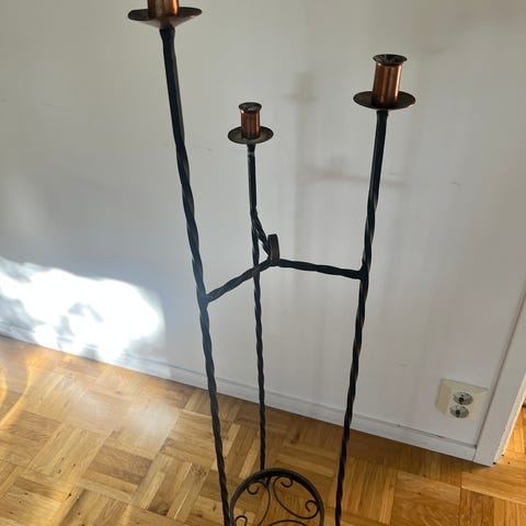 Metallinen yksinkertaisen tyylikäs kynttelikkö lattialle tai matalalle pöydälle.