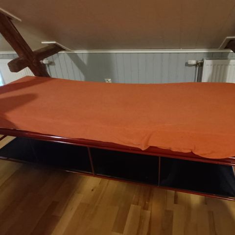 Puinen lasten sänky. Lyhyimmällä säädöllä 120 cm. Pisimmillään 225 cm. Leveys 85 cm. Voi säätää esimerkiksi lapsen kasvun mukaan tai tilan mukaan. Hyvässä kunnossa, pieniä kolhuja. Nouto Mynämäki.