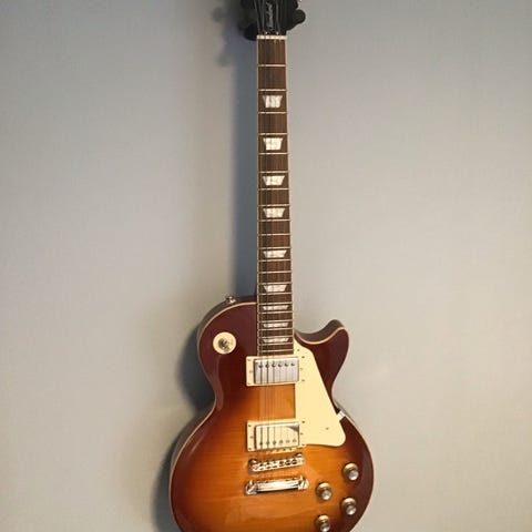 Kitara: Epiphone Les Paul SL -sähkökitara. Pientä maalikulumaa joissain kohdissa, jonka näkee vain läheltä tarkasteltaessa. Tarkemmat tiedot kuvaliitteenä yllä.