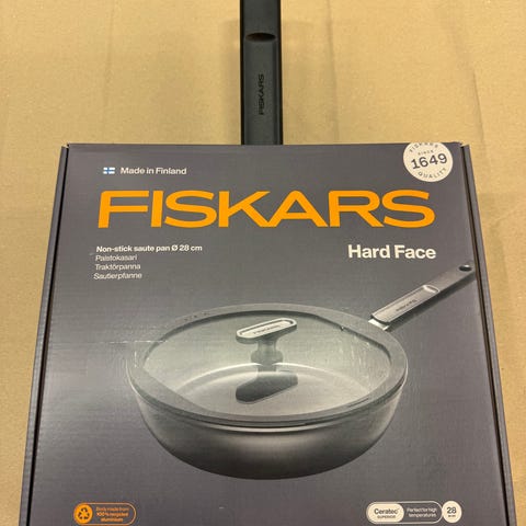 Käytetty mutta hyväkuntoinen Fiskars Hard Face ’Pancake’ lettupannu. 5 letulle. Halkaisija n. 23,5 cm.
