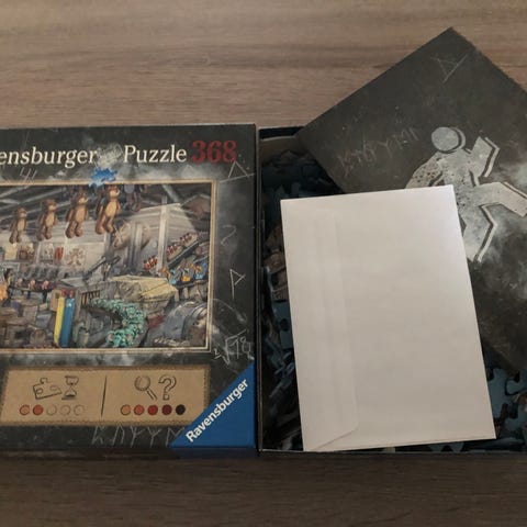 Myydään pakohuonepalapeli. Kaikki palat tallella, mukana ratkaisukuori.