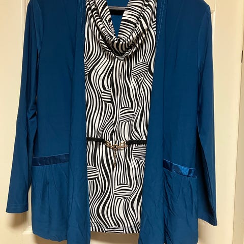 My Wear kaunis tummansininen, valkoisilla pilkuilla joustava pusero.