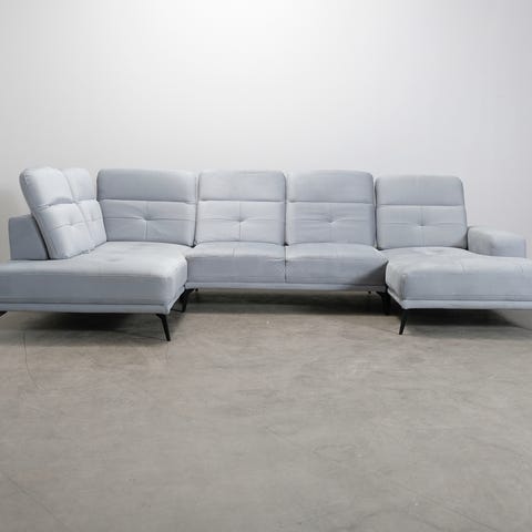 Tyylikäs ja mukava U:n muotoinen sohva, joka tarjoaa tilaa koko perheelle. Harmaan sammettikangasverhoilun ansiosta sohva on helppo yhdistää moneen eri sisustustyyliin.