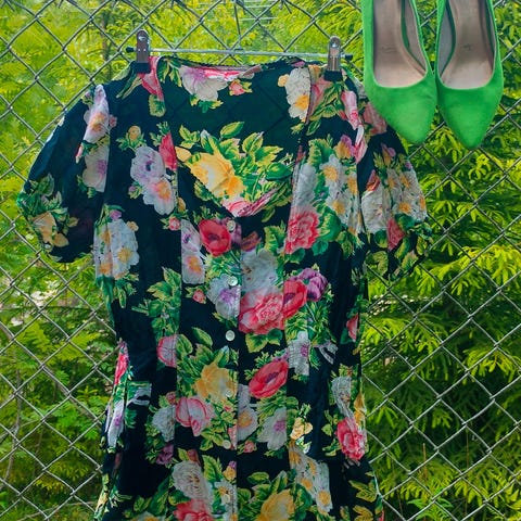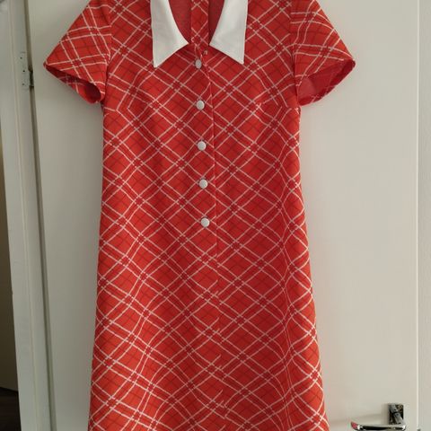 Kaunis vintagemekko, jossa pieni tahra edessä. Käytön jälkiä näkyy toki, sillä mekolla ikää, mutta edelleen käyttökelpoinen.