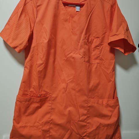 Tämä tunika kuuluu Hejcon klassiseen hoitotyön Charade mallistoon. Keskiselän pituus on tunikassa 72 cm. Tämä tunika on käyttämätön. Materiaaleina on 50% puuvillaa ja 50% polyesteriä.