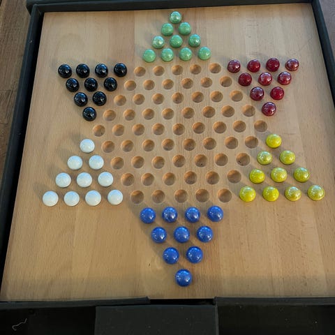 Kaikki osat tallessa. Sis. laudan ja 60 pelinappulaa sekä ohjeet (mm. suomeksi)