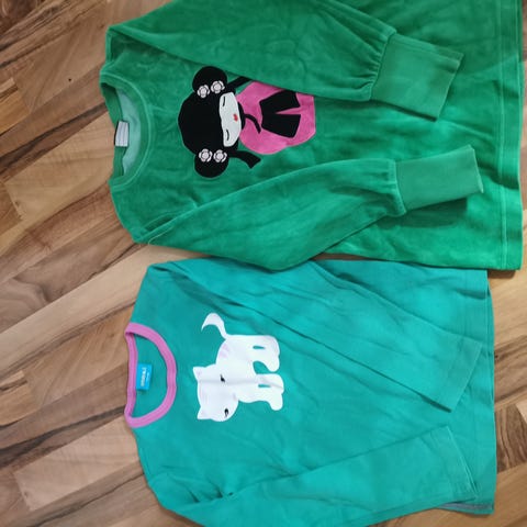 Siistejä paitoja. Sienipaidasta kokolappu leikattu irti mutta samaa kokoa kuin nämä muutkin paidat, hinta 8€. Talo-, pöllö- ja jalispaita haalistunut jonkin verran, mutta edelleen siistejä, hinta 8€/kpl. Lentokone-, merirosvo- ja puutarhapaita sistejä, hinta 10€/kpl. Pääkallopaita käyttämätön, hinta 14€.