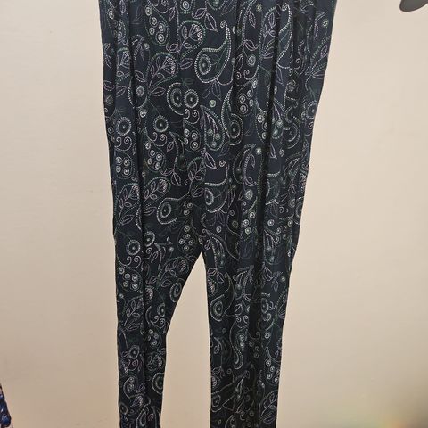 Uudet vihreät puuvillahousut, laput kiinni. Hinta 25€. Pehmeät punaiset velourhousut, käytetyt mutta siistit, hinta 12€.