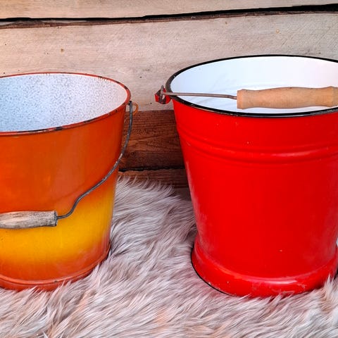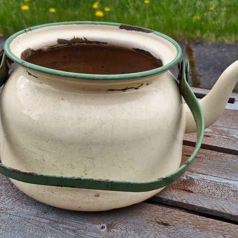Kuvanmukainen nostalginen vanha emäliämpäri 60- tai 70-luvulta sisustukseen tai kukkaruukun suojaksi tai syksyn puutarhaistutuksiin.
