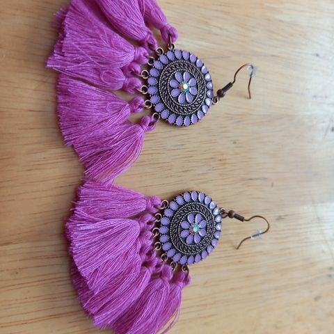 Roikkuvat kauniit korvakorut joissa vaaleanpunaisia kiviä