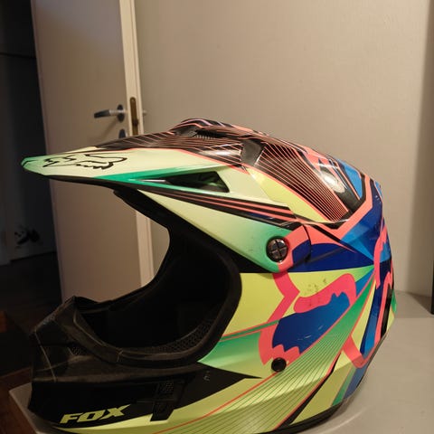 Myynnissä hyvä kuntoinen ja päheä Foxin S-kokoinen crossikypärä. Irroitettava vuori, joka on juuri pesty. Kertaakaan ei ole tippunut tai iskuja ottanut. Vikassa kuvassa näkyy mitättömiä pieniä kulumia.