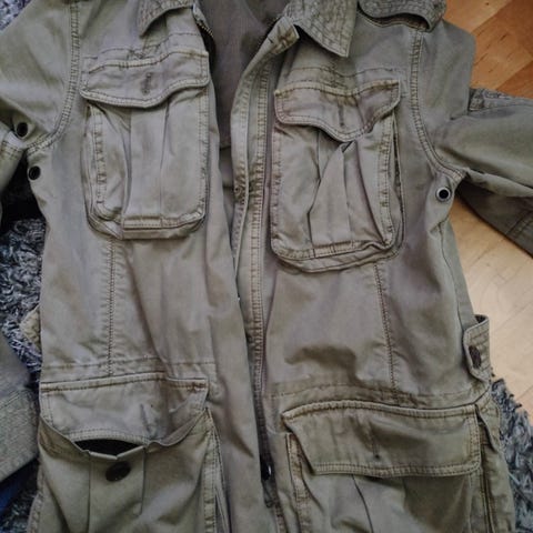 Takki on tavanomaista Tommy Hilfiger mitoitusta reilumpi ja kuvissa mitat.