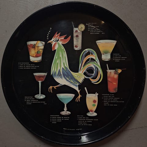 Retro hieman harvinaisempi ISO ja painava värikäs "tyylitelty riikinkukko" tarjotin 60-luvulta, halkaisija n. 38 cm, Worcester Ware made in Grear Britain (made in England). Tarjotin on ehjä ja siisti, todella vähäisiä käytön jälkiä, enemmän ulkopohjassa. Hinta 30 e.
