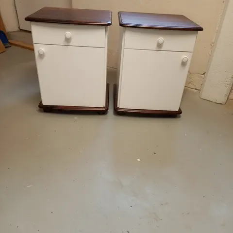 Kaksi valkoista yöpöytää. Hyvin säilytystilaa, tilava laatikko ja kaappi. Käytetyt mutta vielä hyväkuntoiset. Nouto/tapaaminen sovitusti onnistuu: Liljendal, Loviisa, Porvoo, Sipoo (Nikkilä). Myydään mieluiten molemmat, yhden myynti onnistuu myös. 14€ / yksi kpl tai tarjoa