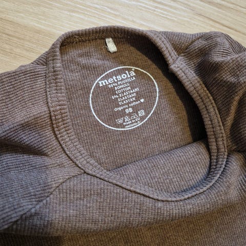Punaoranssi ja sininen Metsola froteepaita hyvässä kunnossa, koko 98.