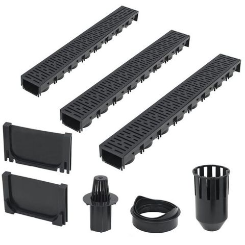 Tämä kattava sarja koostuu 6 viemärikaivosta galvanoiduilla teräsritilöillä, 1 suodatinjärjestelmästä, 1 pohjan poistoliittimestä ja 2 päätykappaleesta. Se on täydellinen ratkaisu ylimääräisen veden keräämiseen ja poistamiseen ajoteiltä, terasseilta tai muilta ulkoalueilta.