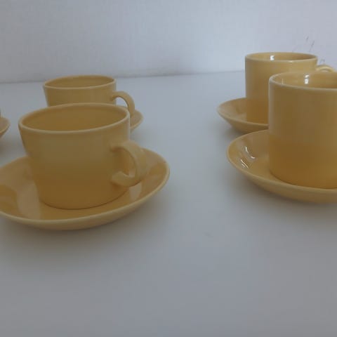 6 kpl vihreitä Kilta/Teema - kahvikuppeja ja tasseja. Kaksi varakuppia.