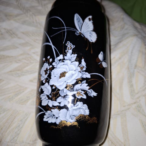 Kuvassa on vasaroitu kuparinen purkki tai astia, jossa on koristeellinen kansi.