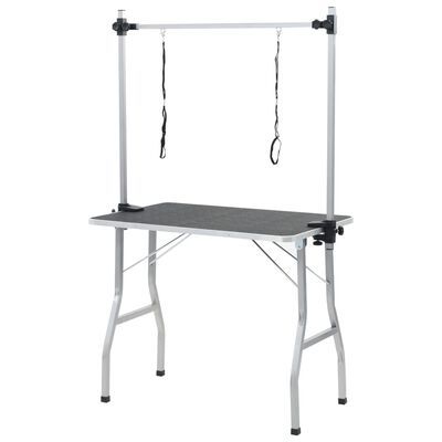 Tämä hoitopöytä on täydellinen kotiin tai reissuun, koiranäyttelyihin jne. Siinä on liukumaton pöytälevy ja jauhemaalattu rautarunko säädettävällä trimmausvarrella ja silmukalla.