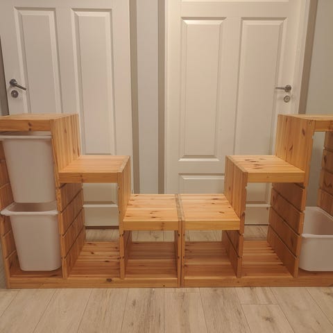 Myydään trofast hylly ja laatikot. Käytetty meillä hanskojen, pipojen ym lasten säilytykseen eteisessä. Nouto Keravalta