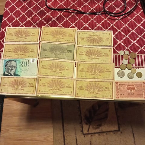 Suomalaisia vanhoja seteli - ja Kolikko rahoja .