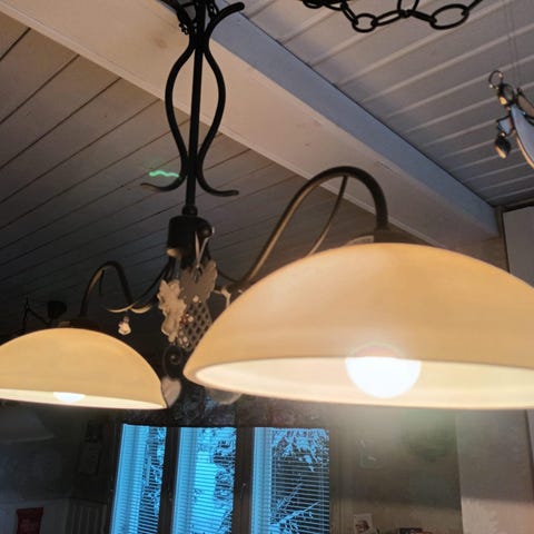 Hienot kultaiset kattovalaisimet. Pistokkeet molemmissa, E27 lampun kanta sopii. Halkaisija leveämmästä kohdasta 31,5cm. Ketjun pituus kuvun kanssa 80cm.