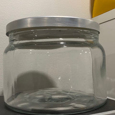 Ikean iso lasipurkki ja kaksi muuta purkkia monenlaiseen säilytykseen. Nämä somisteena keittiössä.