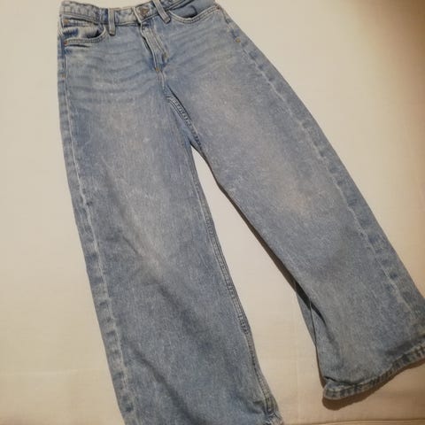 Melkein uudet leveälahkeiset farkut. Eli siis ehjät ja tahrattomat. Pesty hajusteettomalla pesuaineella ja meillä on lemmikitön koti.