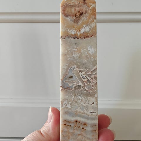 Crazy lace akaatti torni, jonka kärki on vaurioitunut (siitä alhainen hinta).