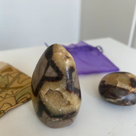 Kristallikivet, isompi noin 15 cm leveä, pienempi 10 cm.
