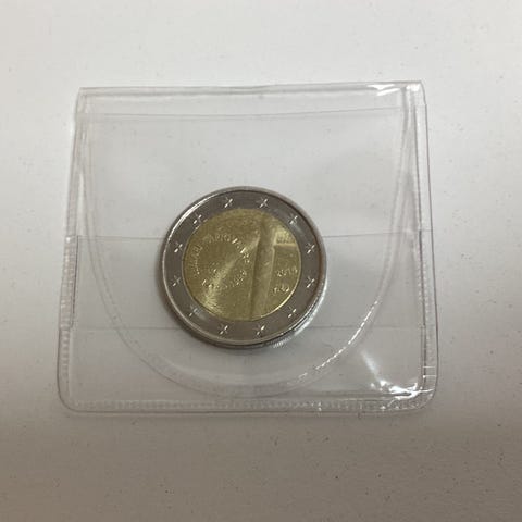 Koskisen suunnittelemassa erikoiseurossa hyödynnetään näyttävästi metallirahalle ominaista kolmiulotteisuutta. Erikoisraha kuvaa Tapiovaaralle tunnusomaista pinnapuuosien liitoskohtaa.