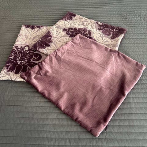 Hemtexin 3 kpl uusia tyynynpäällisiä. 100% puuvillaa. Kaksi yksiväristä ja yksi kauniisti kuvioitu. Koko: 50 x 50 cm. Taloudessa ei lemmikkejä eikä tupakointia. Yht. 10e