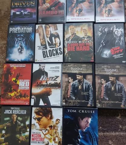 Myydään toiminta dvd-elokuvia.