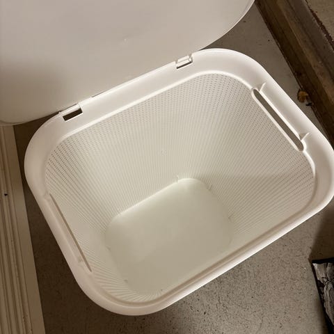 Myydään uuden tieltä tarpeettomaksi jäänyt pyykkikori, jonka tilavuus 50 litraa.