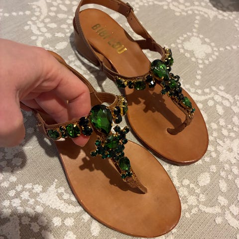 Laadukkaat uudet designer sandaalit! Merkki Laura Biagiotti.Kauniit varvastossut, joissa kimaltelevia erivärisiä kiviä. Käyttämättömät. Vastaa kokoaan mutta sopivat helposti myös vähän pienemmälläkin jalalle