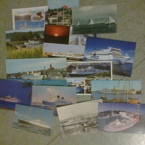 Laiva postikortit, pienet kansiot, koronlaskutaulukko, vanhoja postikortteja