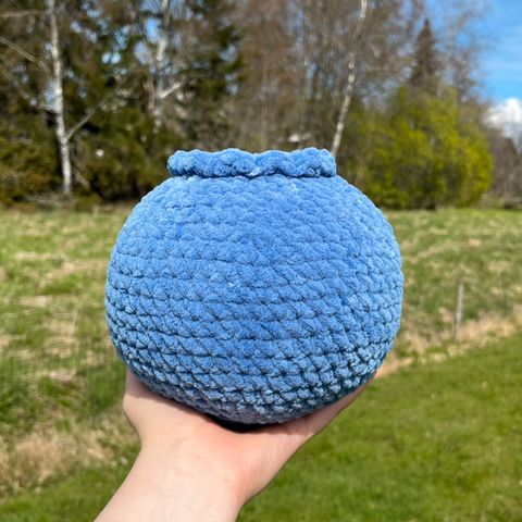 Itse virkattu munakoiso! Lankaa oli todella vaikea työstää, josta syntyi pieniä reikiä mistä näkyy vanua.