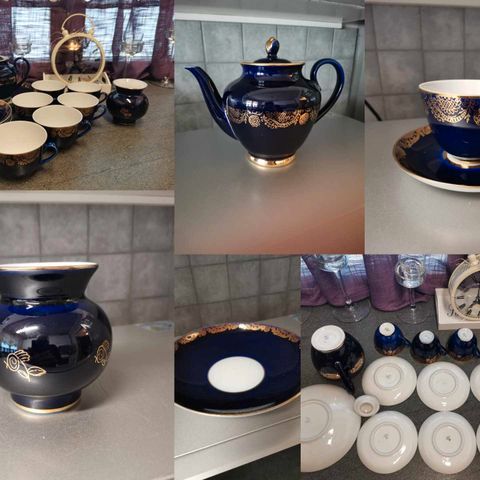 Lomonosov Golden Frieze kahviastiasto 6hlö, kupin korkeus 5,7cm, halkaisija 7cm, pullalautasen halkaisija 15,5cm. Nouto tai postikulut ostajalle.