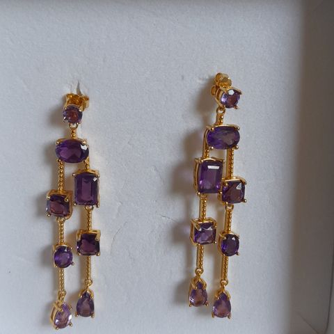 Vähän käytetyt nappikorvakorut. Korun pääkivenä toimii ametisti, jonka ympärillä neljä safiiria.