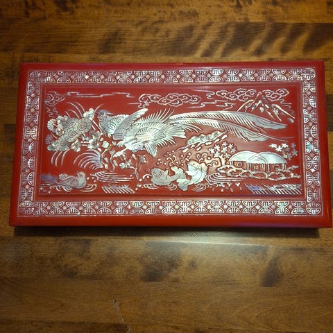1960-luvulta ruusukuvioinen tupakkarasia.